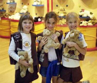 Kaitlyn's Brownie troop at Build A Bear - 2001